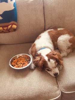Meanwhile, I checked in with Jerry and all was well at home though Caesar, our Cavalier King Charles Spaniel, had stopped eating, whined the entire time the neighbor took him for his two walks and had spent five hours a day on the back of the couch sitting-sentry, waiting for me to return.