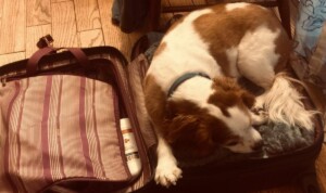 I know, you haven’t heard from me for quite a while. I’ve been diligently looking after my parents. They’ll tell you they’re looking after me (I had seven teeth removed). I was able to get them trained to soften my kibbles and start feeding me canned duck and venison shreds – until someone told them that dogs have 42 teeth so my not having seven wasn’t a big deal. Harumph! (But my mom is still giving me canned food over my kibbles. She’s a softy). We’re getting ready to head to California. I’ve been supervising the car packing going in and out of the garage to make sure my kibbles are there but also because I don’t want them driving off without me! I hope they let me sleep in the car the night before we leave so I can be certain I’ll be a part of the pack. My mom is driving. Dad is the navigator and it can be kind of hectic when they misunderstand each other. “It’s on the left?” “Right.” “Right? I thought you said left?” And on it goes…My dad is doing ok. He went deer hunting and got his deer. At 90, he felt pretty great about that. And his cancer is behaving – so long as he gets something they put into his arm every month. (He doesn’t need teeth for that though he has all of his!). We’ll miss the snow my mom says and arrive in Rancho Mirage in 80 degree weather. I can hardly wait to smell the new smells. But I’ll miss the scent of juniper and that of deer that passed through the labyrinth when no one was looking. But I’ll be safe with my family. I hope you’ll be safe too wherever you are.  Woof Woof, Caesar