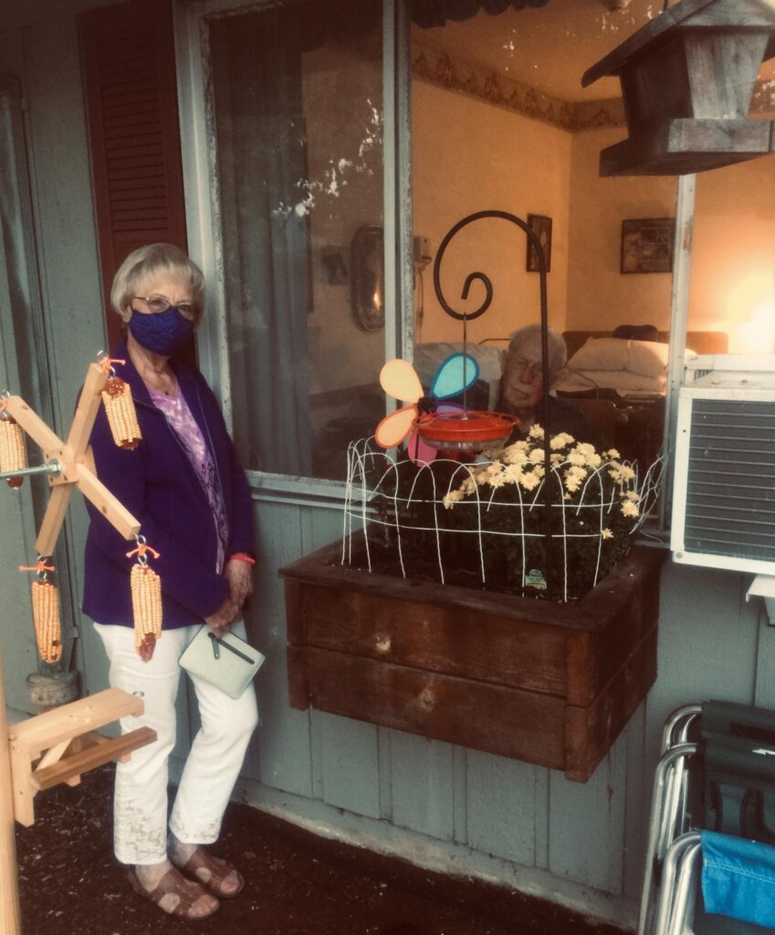 Creativity in communicating is a lesson to be learned in this pandemic. One of the ways my friend Carol—and her husband Jack Tedder— have coped with Covid-19 restrictions is to be creative for connecting with her husband of over 60 years who is in a skilled nursing facility. She has not been able to touch him since February – and we know the research about how touching helps us heal – she has to communicate with others who look after him now. They get to lift his legs to help him dress, hold his shoulders while assisting in transferring from his bed to his wheelchair. They serve him food, all things she used to do but can’t because she can’t enter the facility. It’s been a hard journey because at his age, 91, they know they don’t have a lot of time ahead together so “sharing” him with others can be a trial. But like those band kids, she knows she can’t “blow her horn” now. She must adapt. With her generous heart, she and her family have created a garden outside his window. A feeder attracts birds and recently a squirrel challenge was added to the “window patio” with corn to attract the fluffy-tailed rodents. When it’s warm outside, she can stand and chat through an open window; otherwise, she and her hubby use phones to share their days. But she has reminded herself that even in her 80s she is learning new things because of this pandemic. She’s being strong and flexible and giving herself credit for doing the best she can. Here’s hoping the same for all of us. Stay safe.